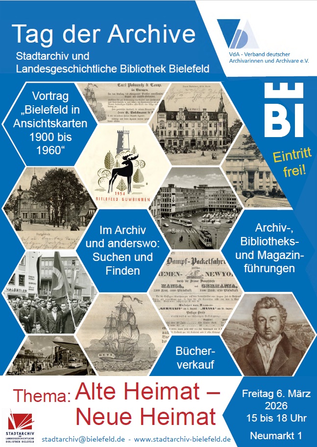 - 15.45-16.15 Uhr: Vortrag „Aus der Kaiserzeit in die Wirtschaftswunderzeit – Bielefelder Geschichte(n) mit und ohne Ansichtskarten“ von Peter Salchow